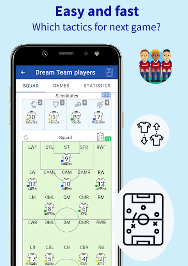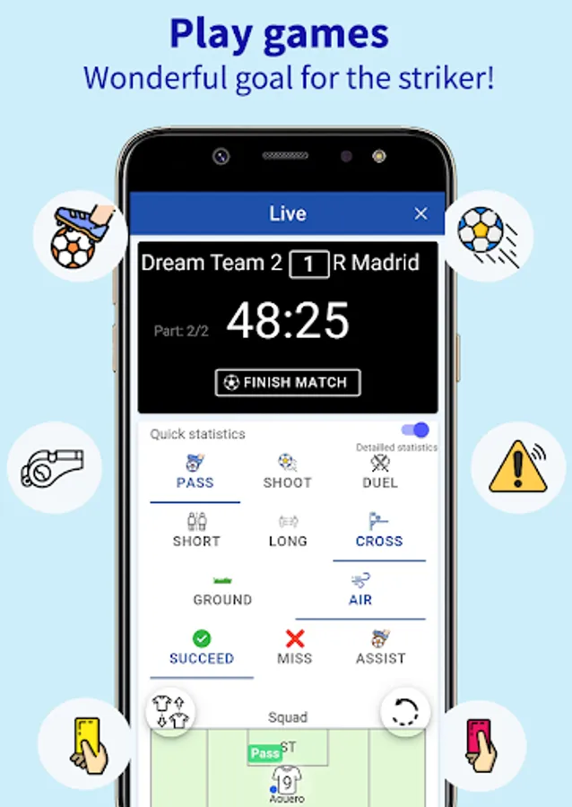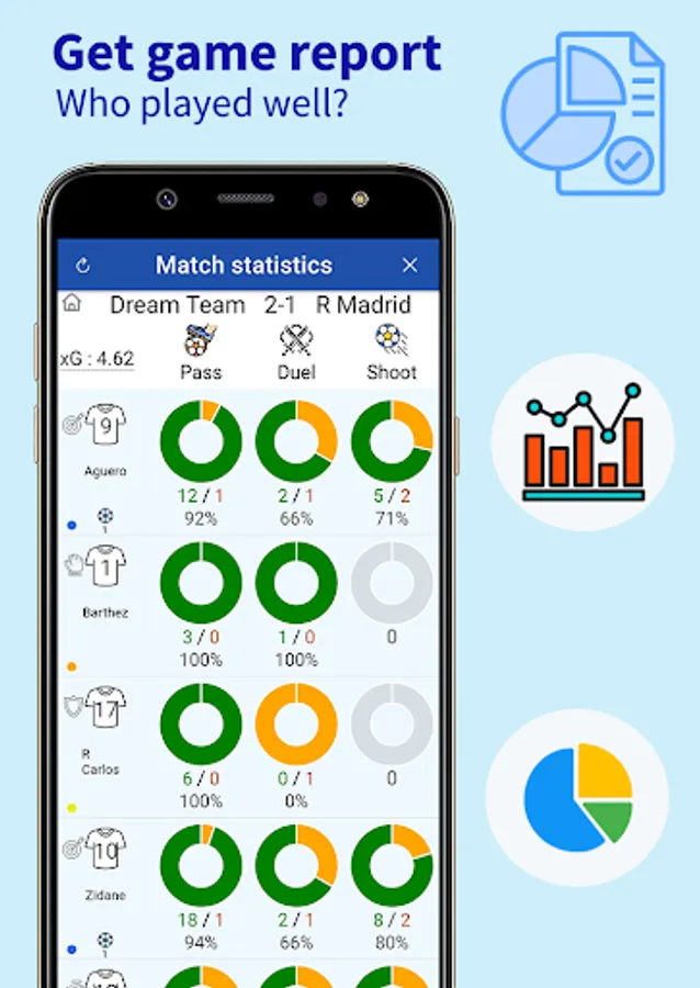 Manage your team, just watch a live game or a team match video 🎥 and just choose the statistic and click on the player. Generate match and players statistics at the end of the match and analyze them. No more paper 📋 to get statistics, everything important is within the app 📲