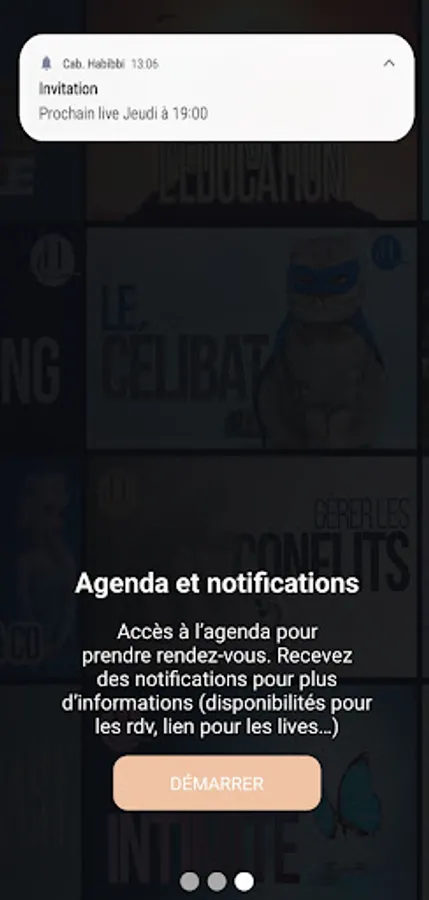 Access to the calendar to make an appointment. Receive notifications for more information (availability for appointments, link for private lives, etc.)