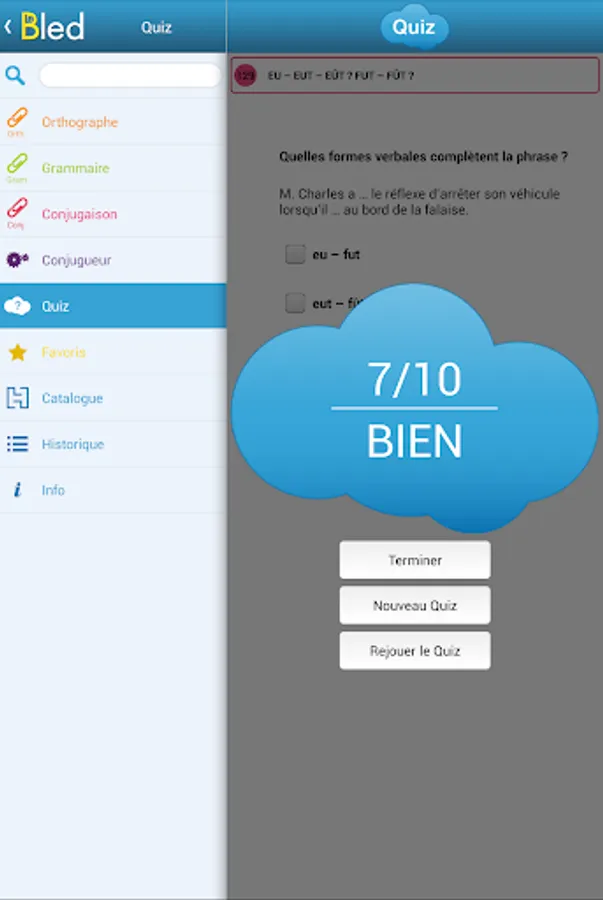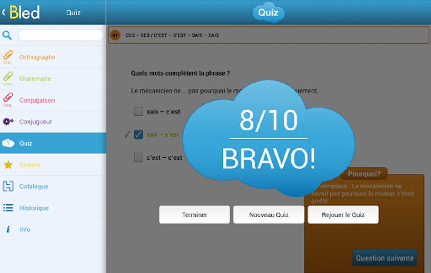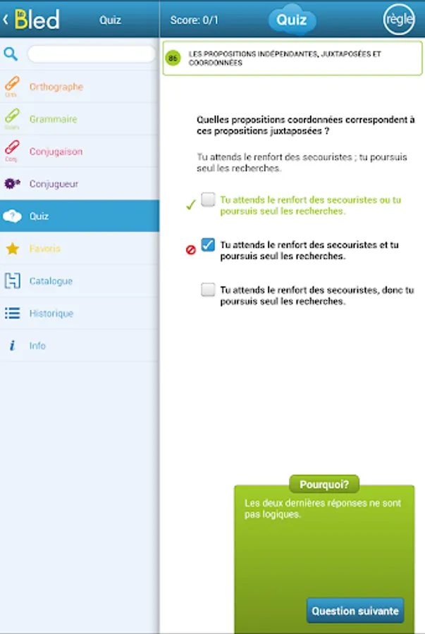 Designed to respond immediately to questions we pose the French, the application offers a keyword search to access the rule or a combination, depending on the input.
