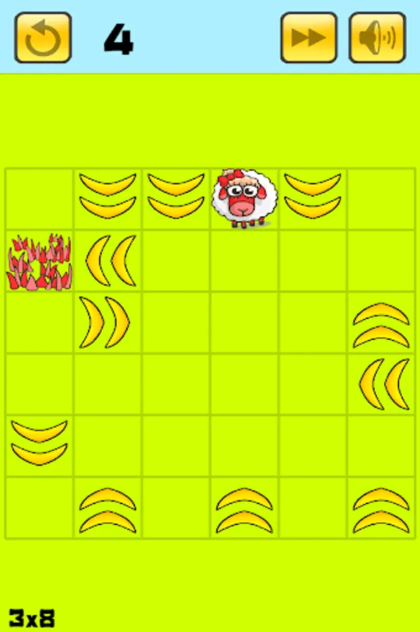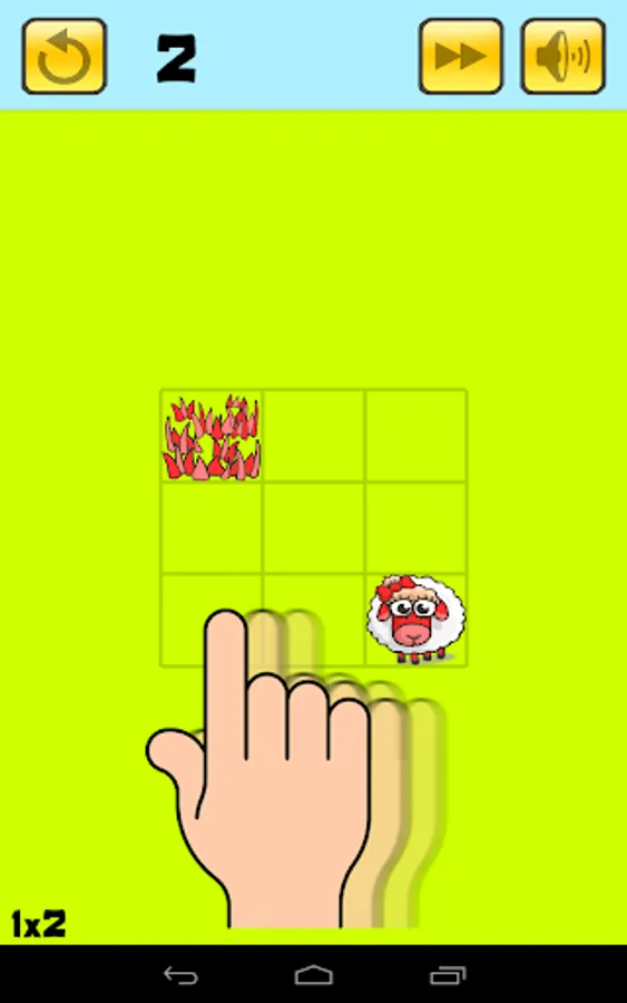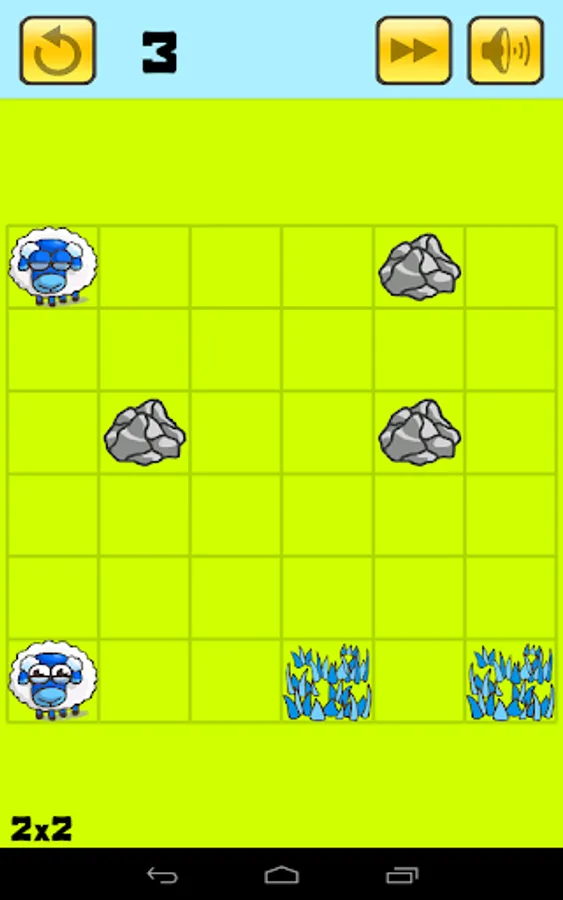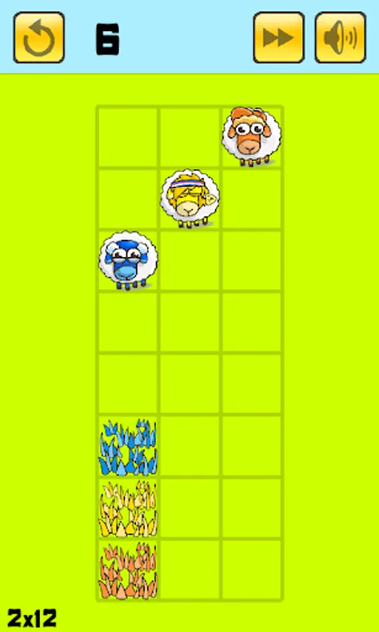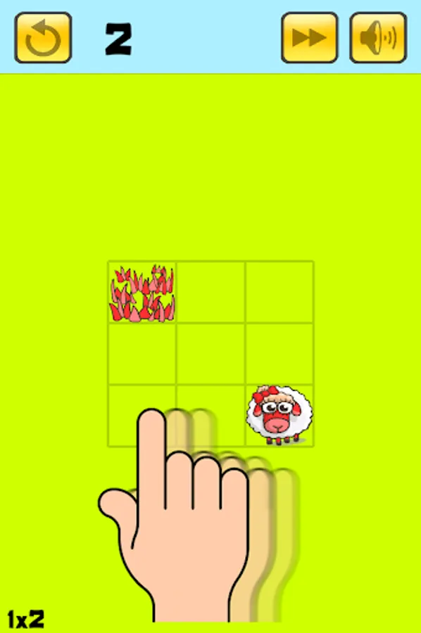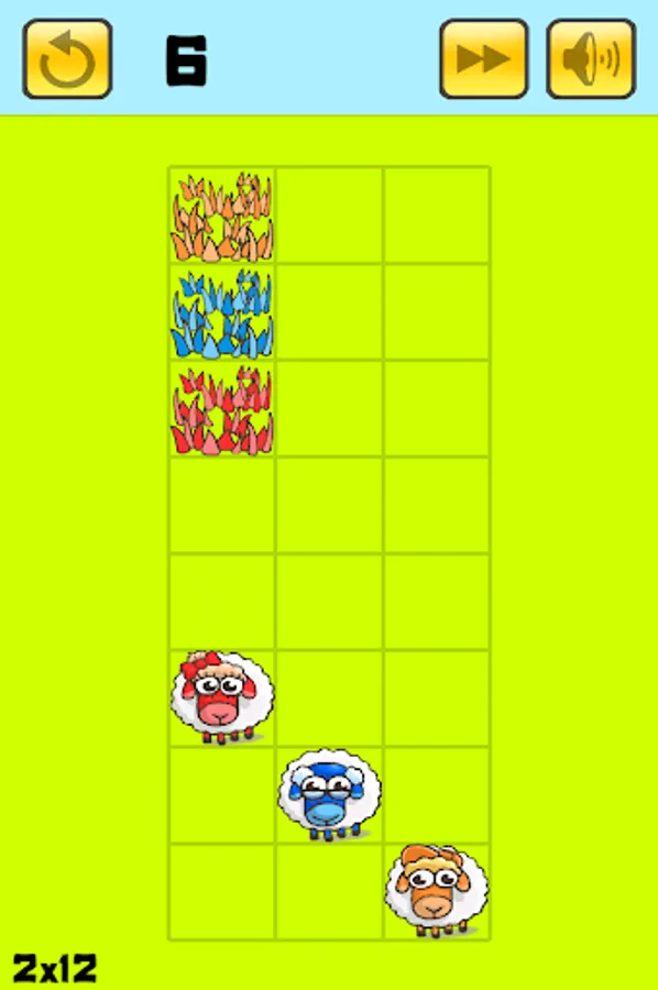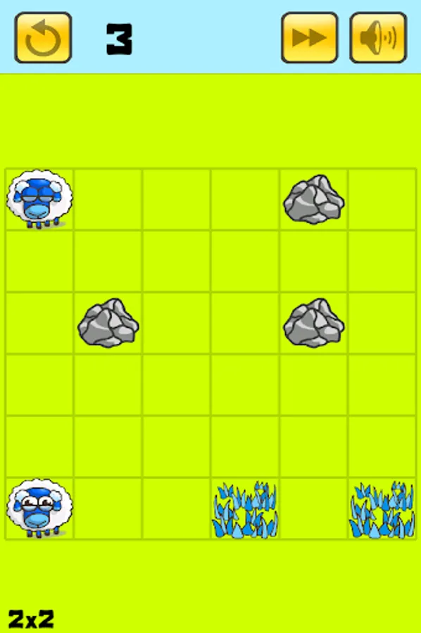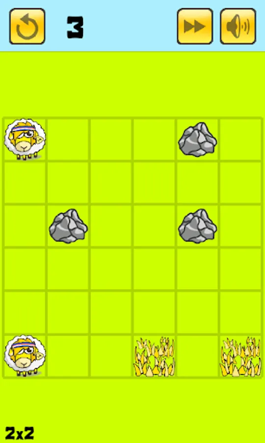 Lead your Sheep to their food within the fewest moves possible. Drag them in straight line using the objects around them.