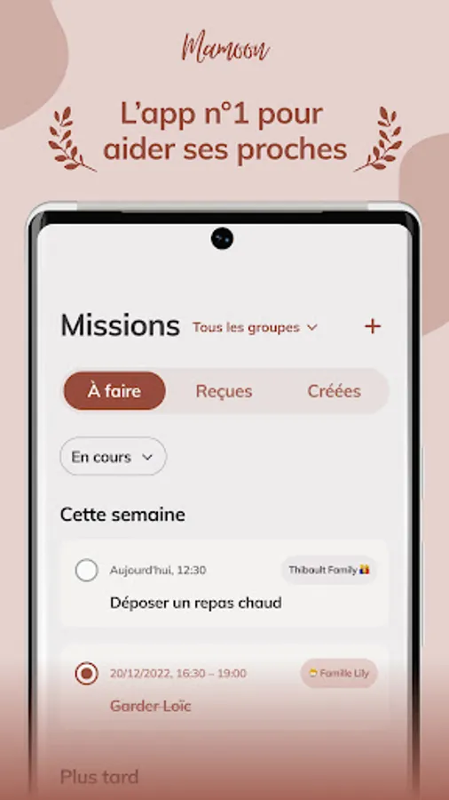 Postpartum: delivering a hot meal, picking up a product from the pharmacy, picking up Gaël from school, taking care of the laundry, buying diapers, etc.