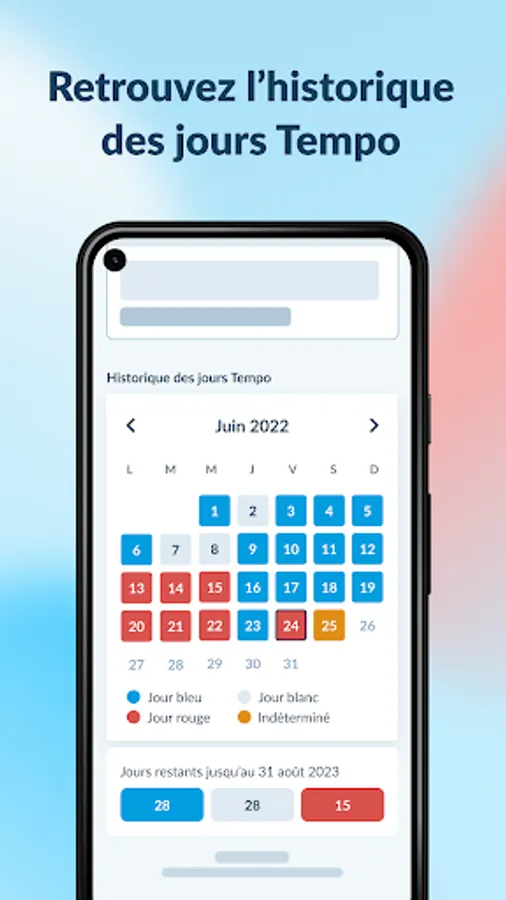 In addition, the Tempo Infos by Hello Watt application provides you with a history of Tempo days.