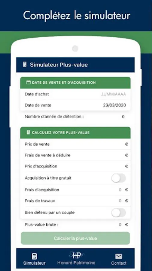 Simple and quick to use, it has a simulator that will calculate the amount of the real estate capital gain tax to be paid to the tax authorities.