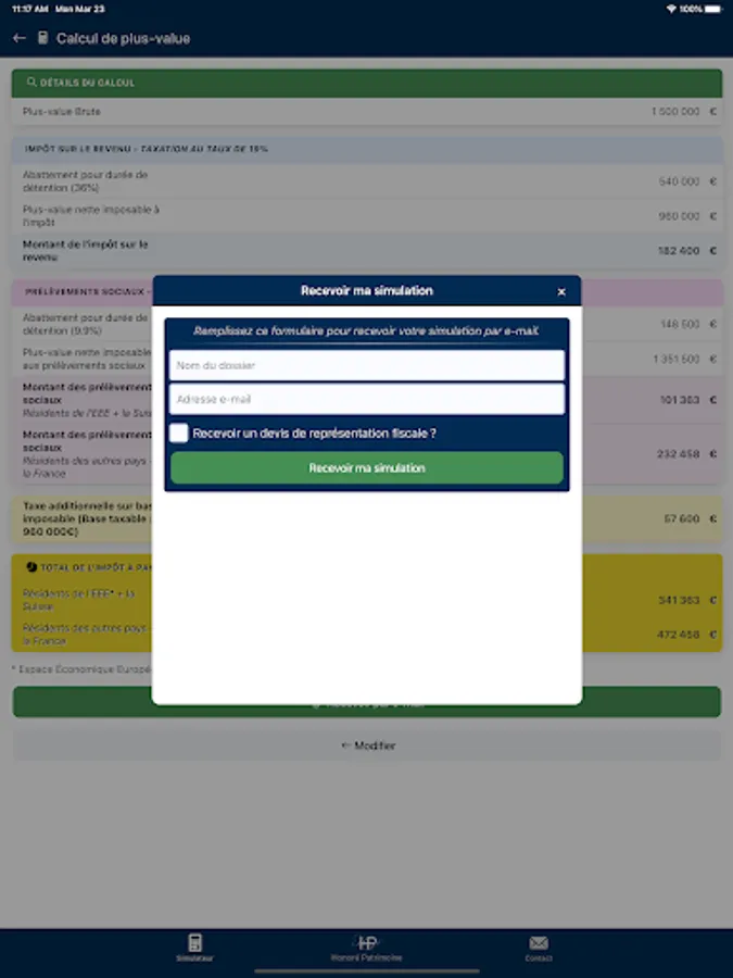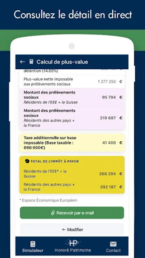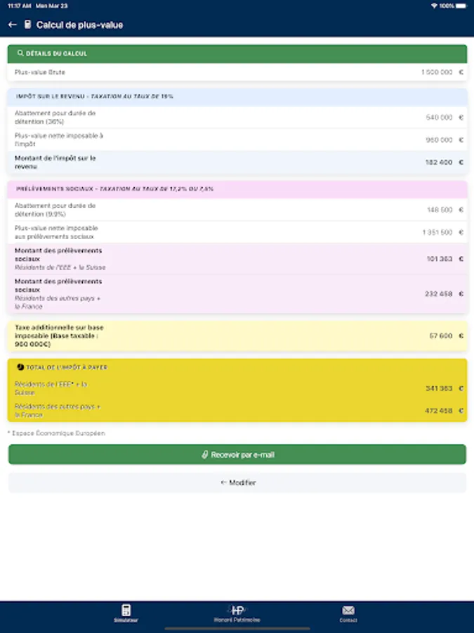 At the end, you will be able to obtain a detailed and complete summary of the tax calculation, showing the deductions for the duration of ownership, as well as the tax rates that will be applied to you.