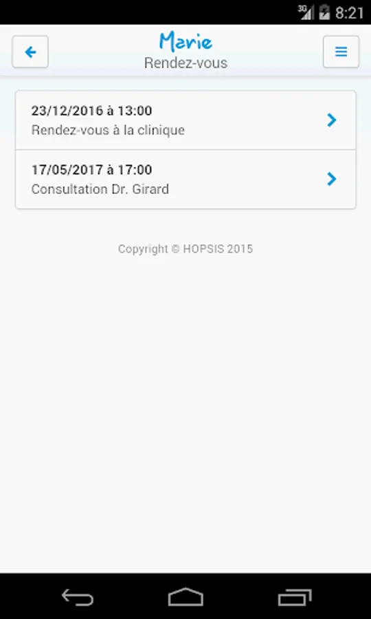 - Consult appointments, seized by him in the Compilio website (town meeting) or transmitted by HCL. For each appointment the HCL, practical information and the procedure on the day of the appointment are indicated (location, level, need to pass the admissions office or not).