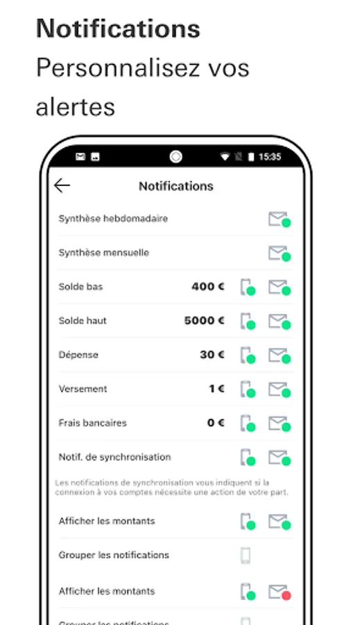 Our app will alert you in case of unusual movements of your money in the amounts that you set.