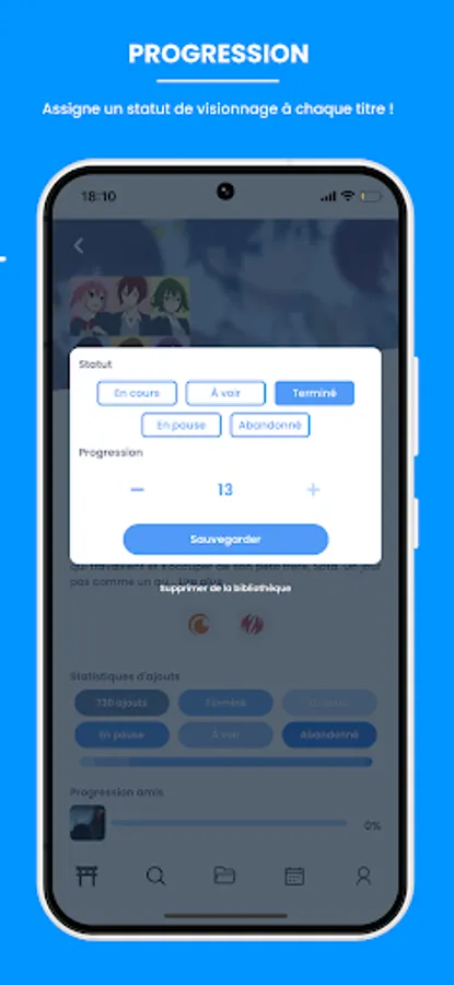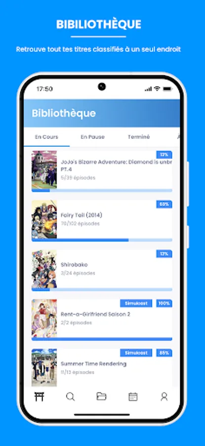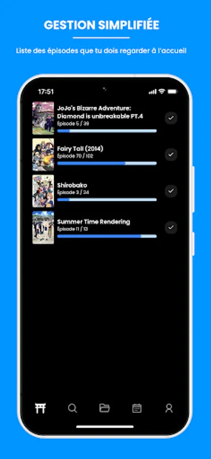 Create an account and add your favorite animes to your library to be notified of each new episode release. With the "seen" function you will be able to know where you are in the viewing of your animes and you will be able to know the time that you spent in front of your favorite animes.