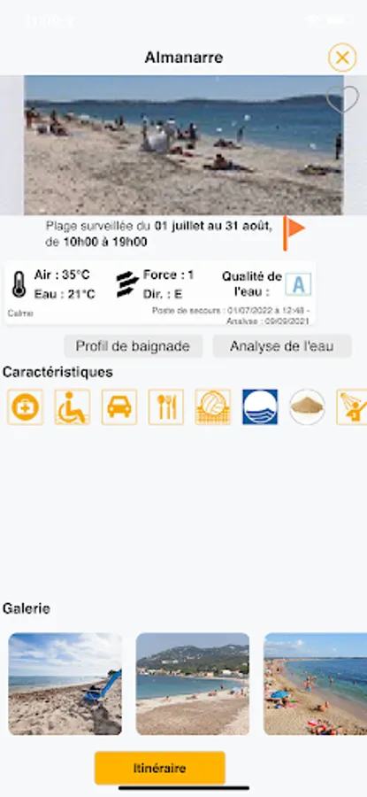 Wherever we may be, "Hyères Beaches" provides access to the information transmitted in real time by the aid stations: bathing flag, air temperature and water, direction and strength of the wind, and index level of UV risk, state of the swell ...
