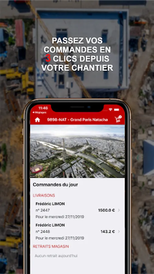 A simple and intuitive application that allows you to order materials from your site in 3 clicks. Its offline mode is designed to take into account the constraints of construction sites and allows you to enter your purchases without the need for an internet connection.