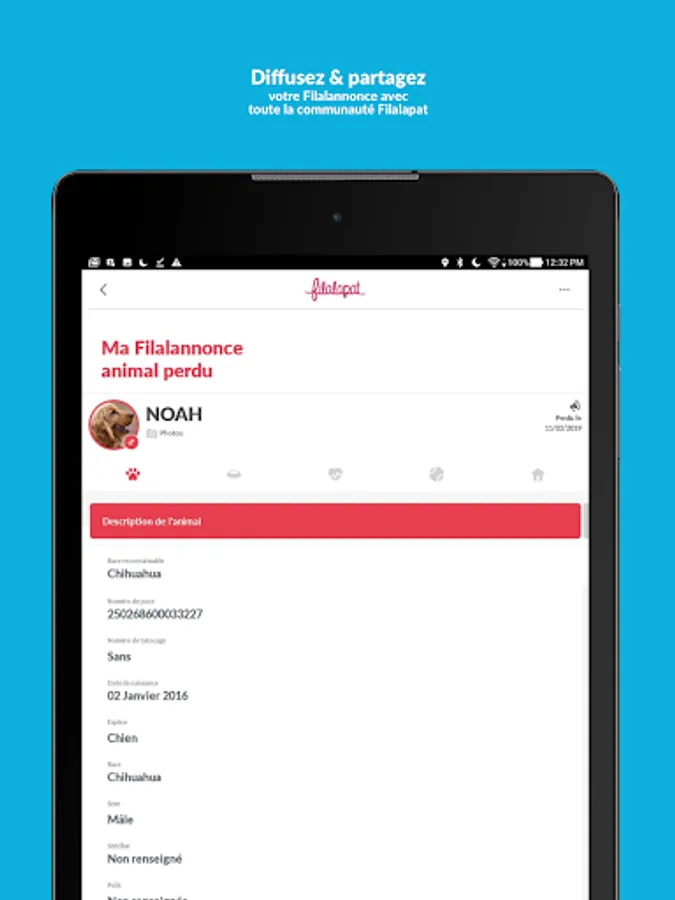 Filalapat is the official application dedicated to animals seen / lost / found in France.