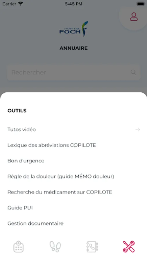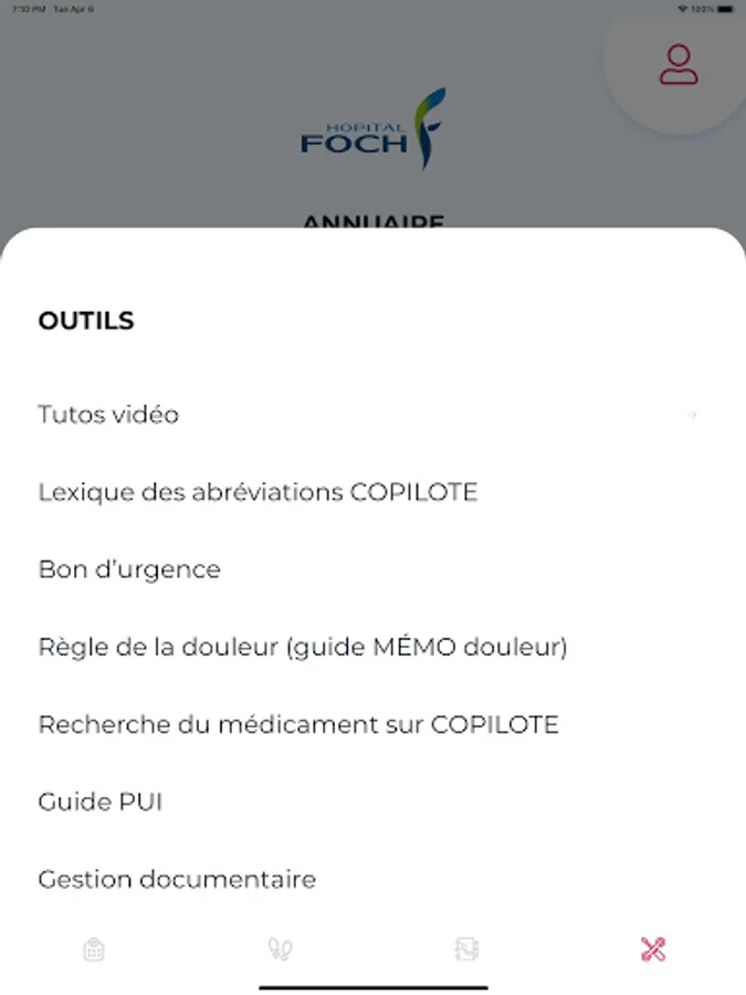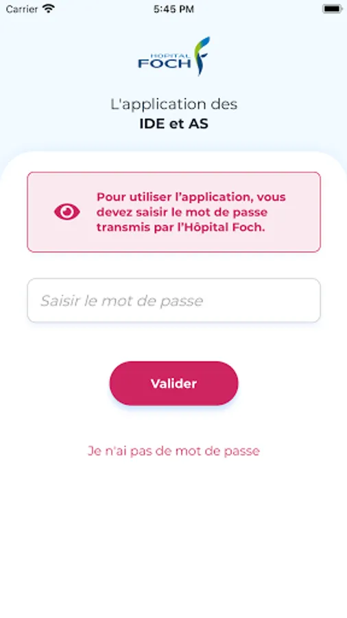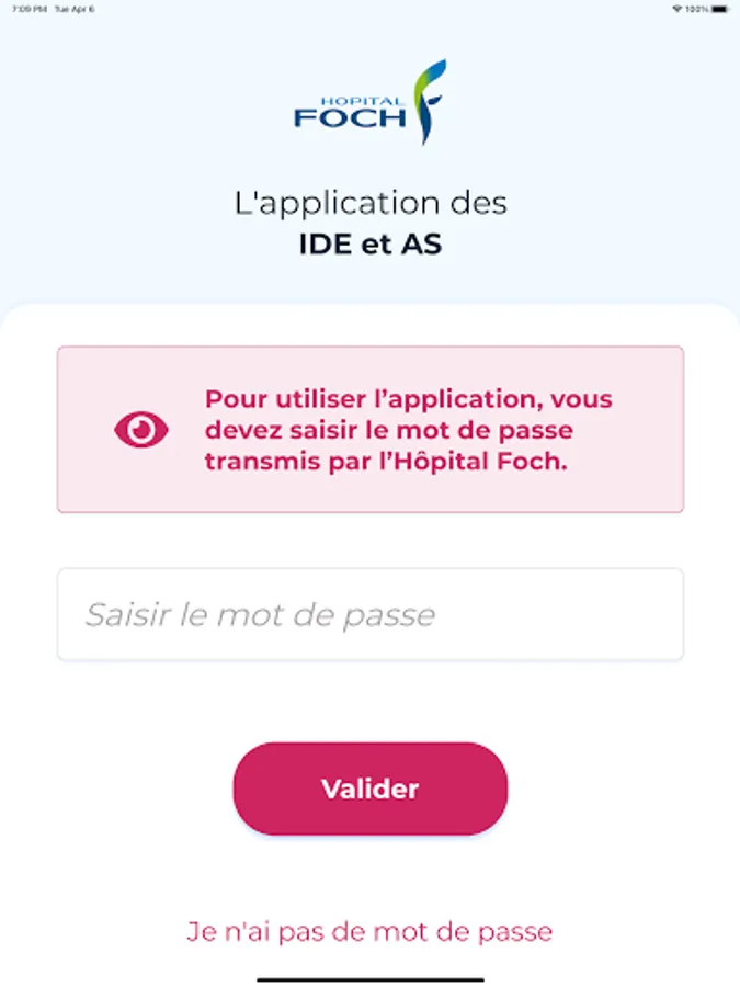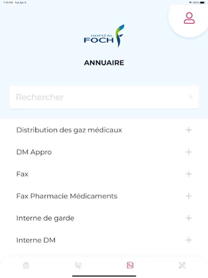 This application is a service intended for healthcare professionals at CH de Foch, providing easy access to all useful information.