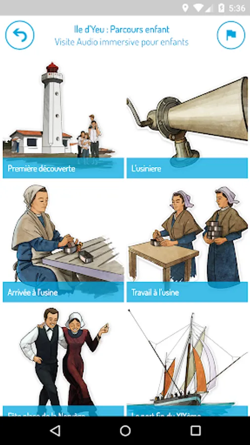 The Y-ride application will allow you to relive the great moments of the Ile d'Yeu with scenes played by almost twenty actors. Covering the main points of the island, you can use this application by downloading the contents beforehand and by starting the tour without lattice strain.