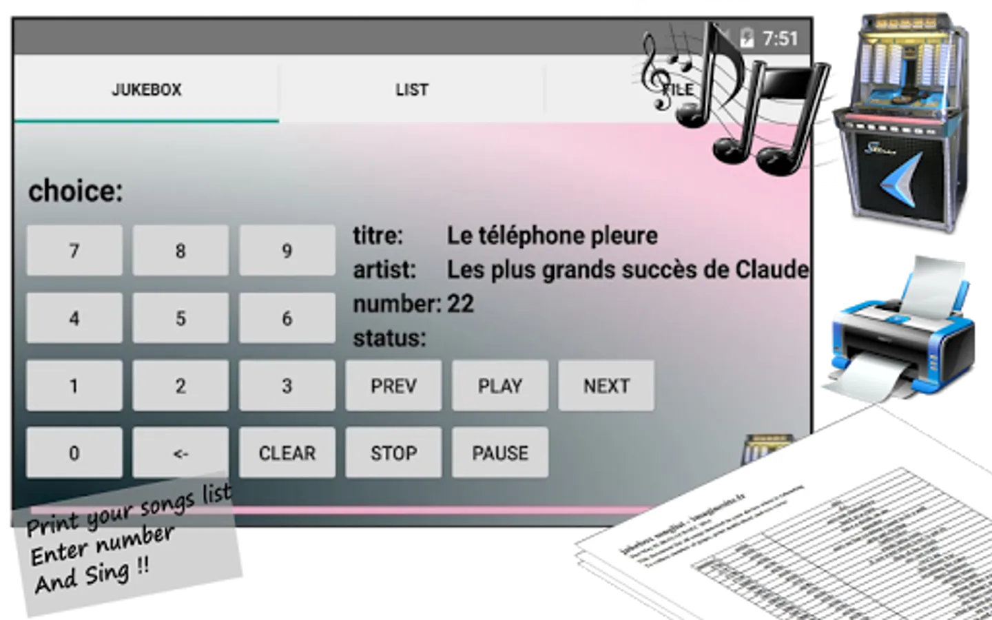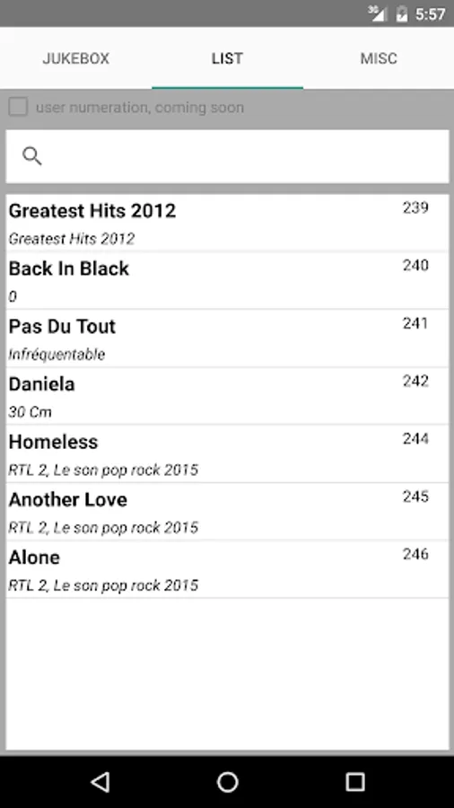 Type your song code, like a real jukebox .