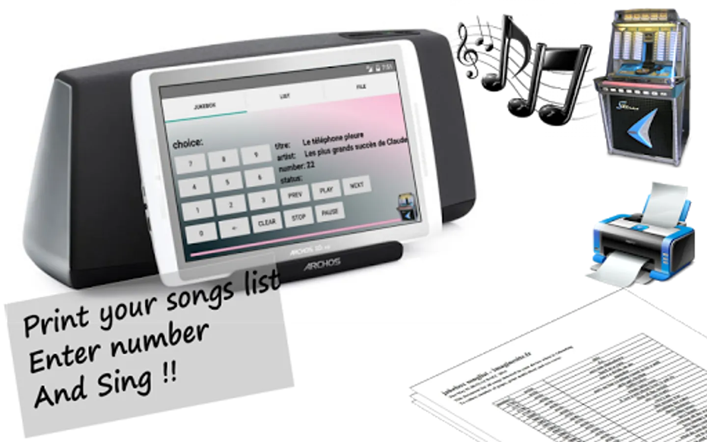 Let your tablet on its base , your guests choose from the list