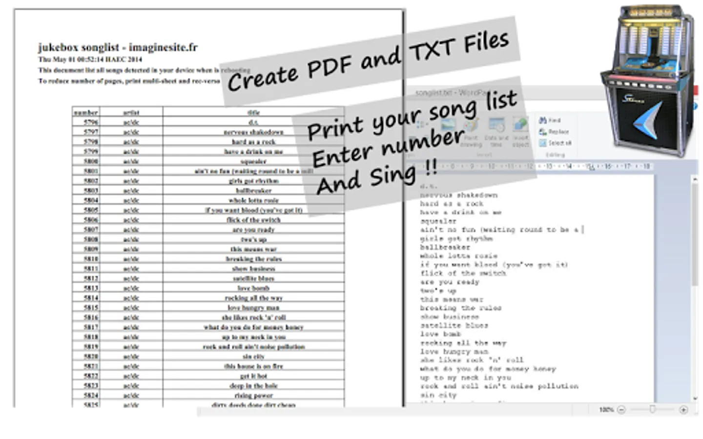 Send your music list by email, so you can print easily