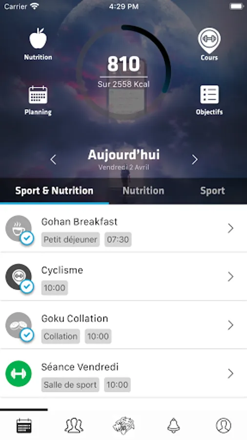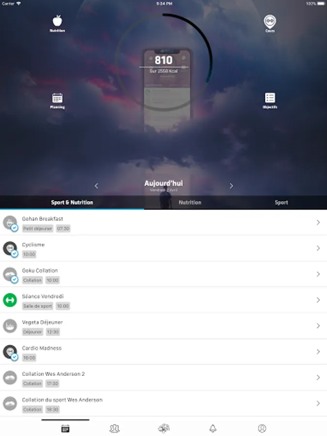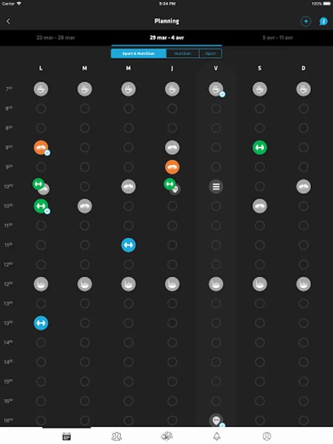 On it you will find the planning of your meals and sessions created beforehand by your coach, in response to your objectives. In your planning you can add yourself the sports and nutritional programs designed by your coach.