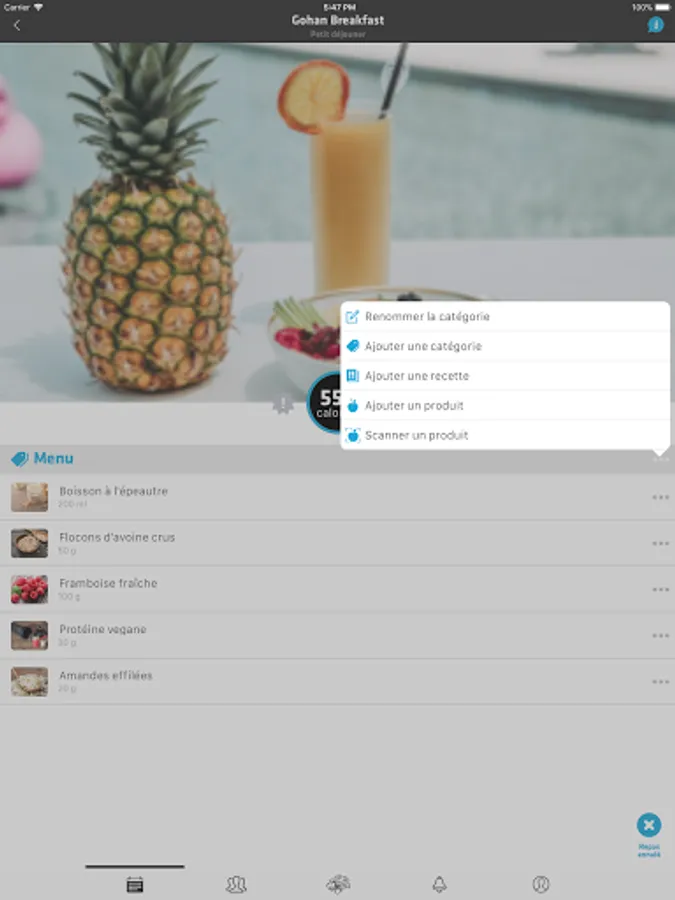 The nutrition + tab will allow you to enter your food dislikes, which you can then share with your coach. Variants of foods will be offered to replace these same selected foods. You will also have access to the list of your recipes and finally to your shopping list which will adapt just as much, in real time, to the meals added to your schedule.