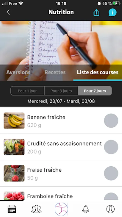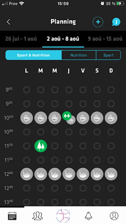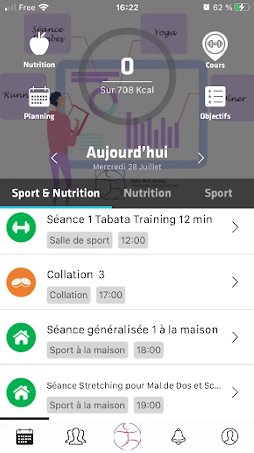 Each user of our application will be able to find the planning of his meals and sessions created upstream by the NBO Well-Being Coaches, in response to his objectives.