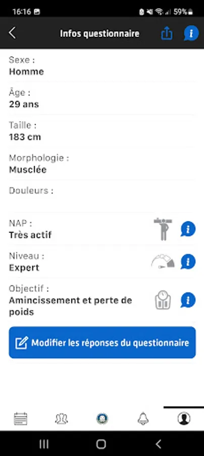 Find all your personalized food plans and your detailed training programs, the follow-up of your physical evolution will remain recorded in the database.