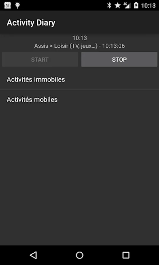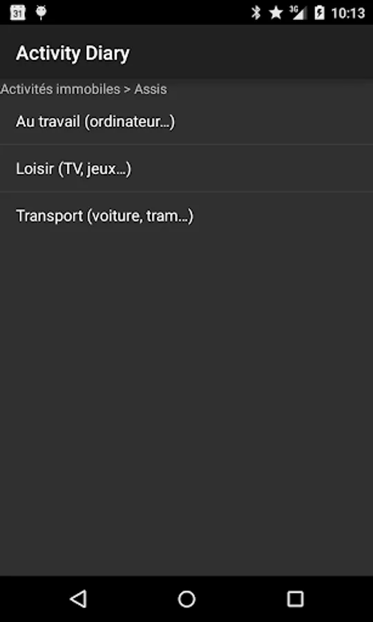 Activity Diary allows reporting the beginning and end of activities such as: sitting, standing, walking, climbing or descending stairs, running and taking public transportation.