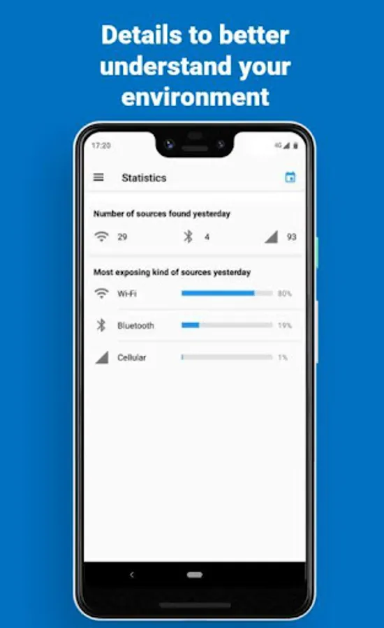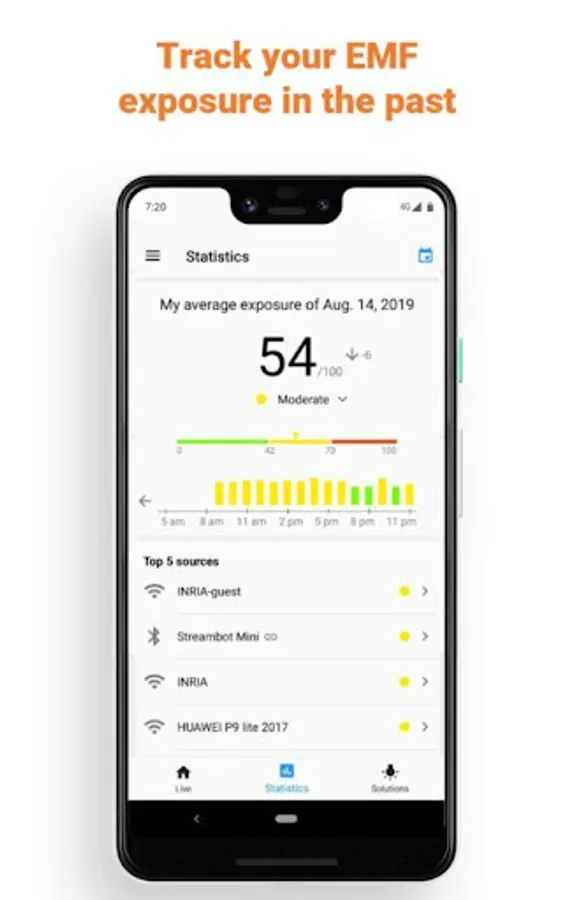 * Track EMF exposure during the day - Statistics per day to monitor your EMF exposure