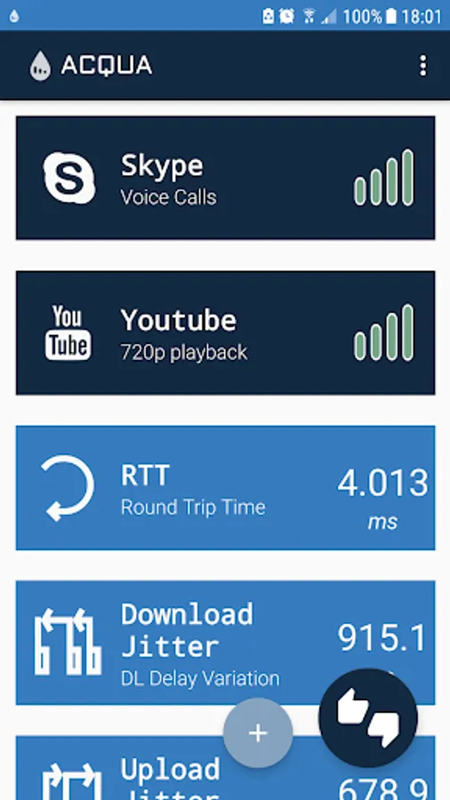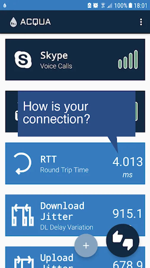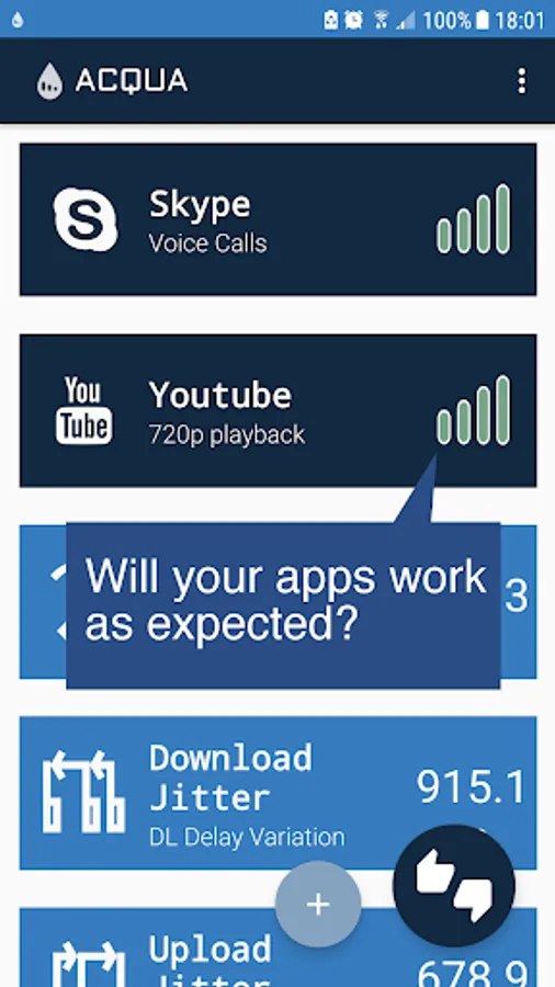 ACQUA will answer this question by checking your network conditions and predicting how your apps will behave giving you a small forecast.