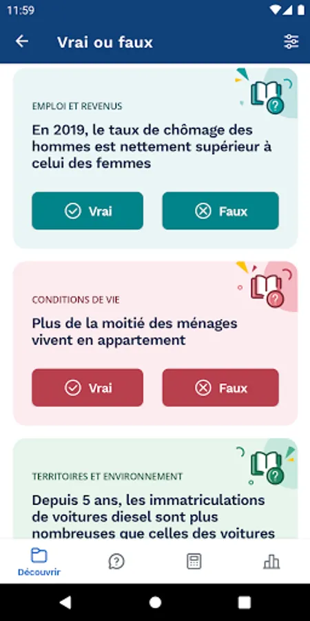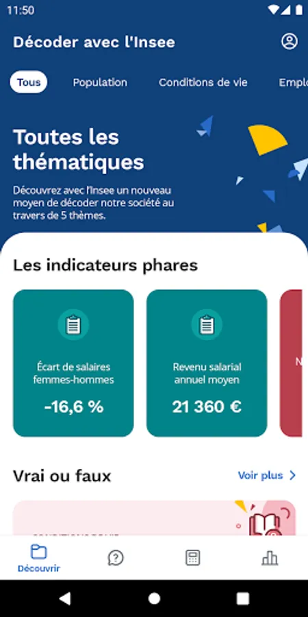 "Insee Mobile" is a selection of indicators, tools and news. But they are also quizzes to assess yourself, "true or false", "Did you know?" »As well as many links to improve your knowledge. You will also be able to get an overview of the gender disparities and how they have evolved over the past 70 years.