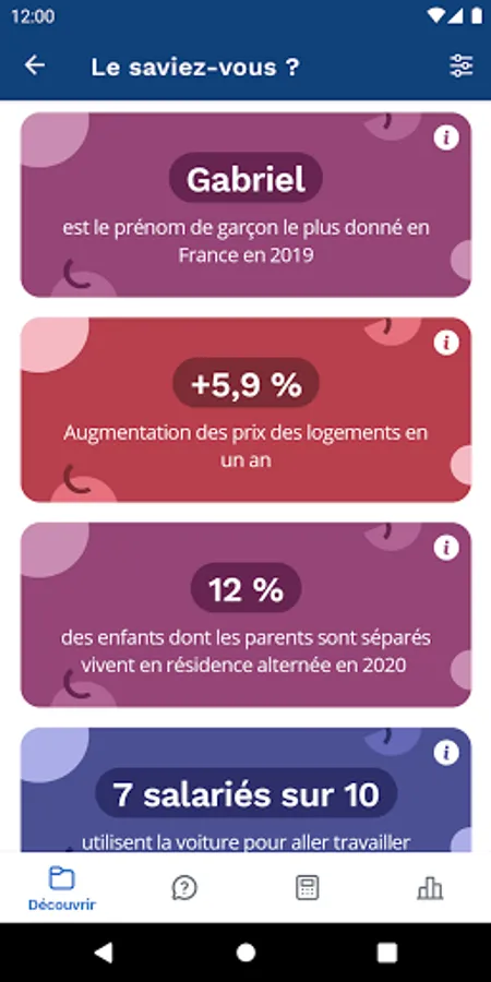 The Insee Mobile application makes it easy and attractive to discover information on the French economy and society. If you want, you can also share this information with your friends.