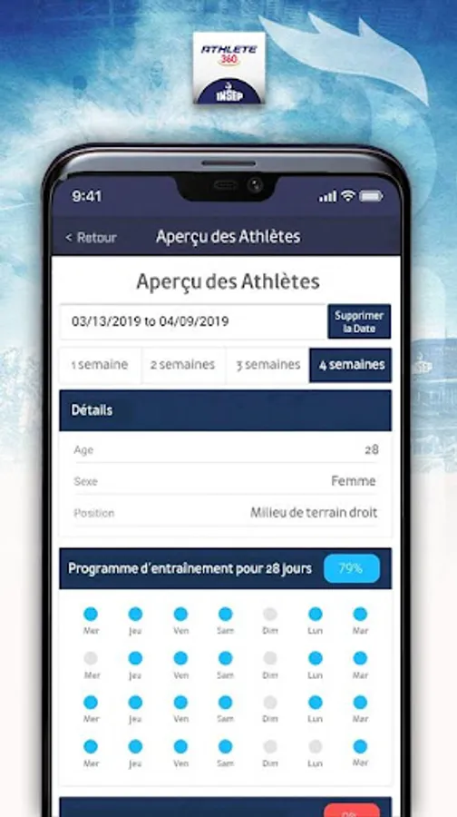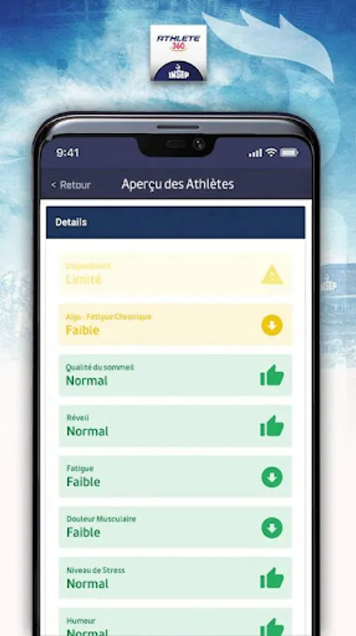 This application is set up by the National Institute of Sport, Expertise and Performance (INSEP) as part of the daily monitoring of high-level athletes registered on the ministerial list.