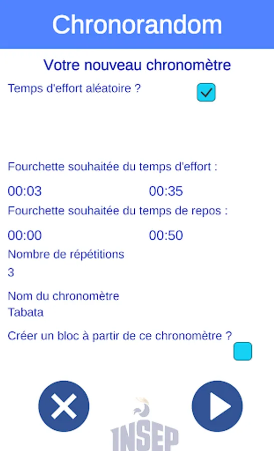 The purpose of the Chronorandom app is to provide coaches with a stopwatch application that allows them to spend time and effort at rest.