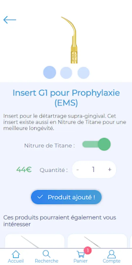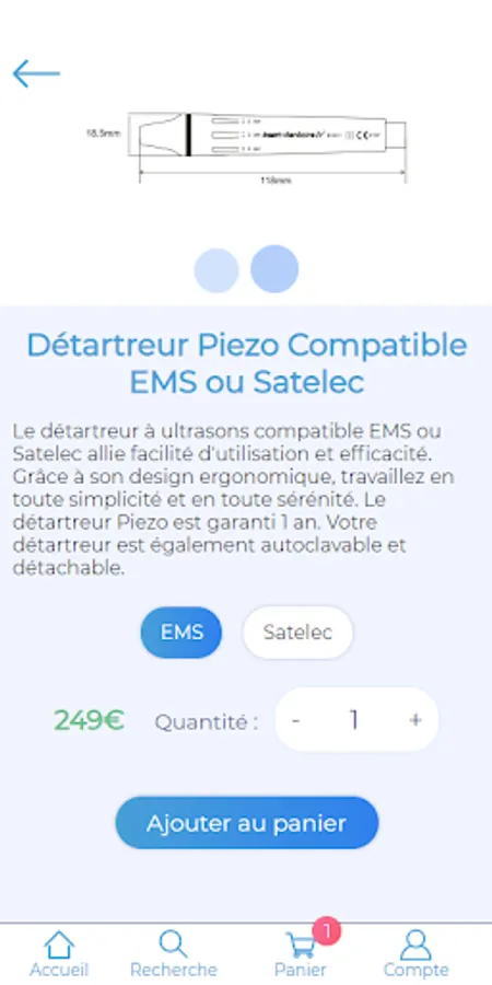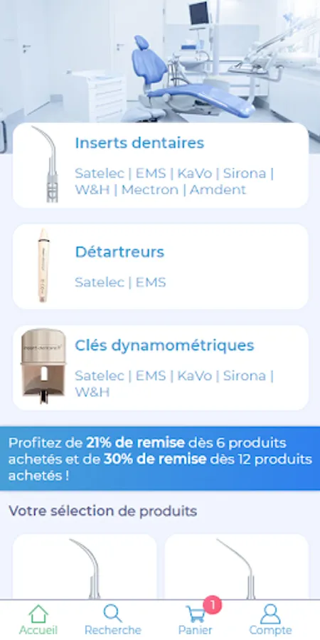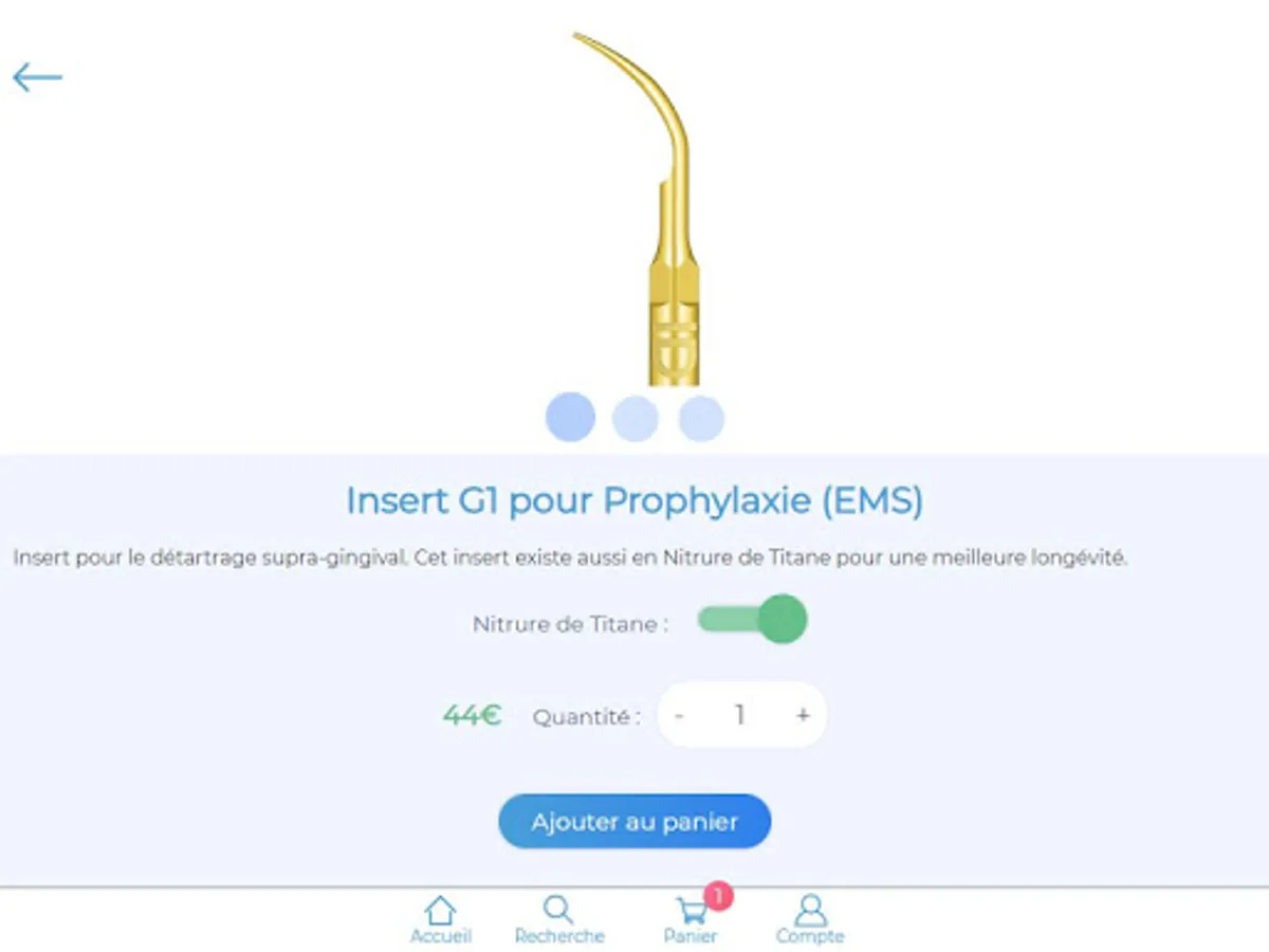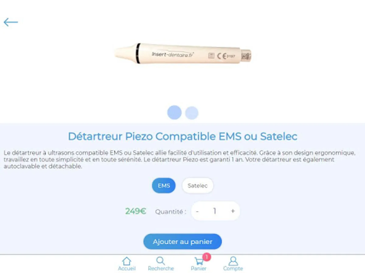 Enjoy exclusive discounts using the app. Our products are compatible with Satelec, EMS, Kavo, Sirona, W & H, Mectron and Amdent and comply with European standards.