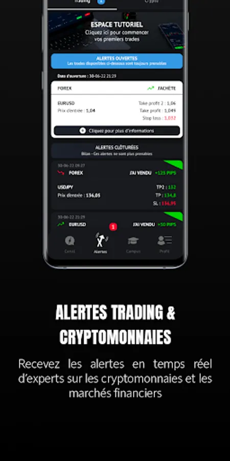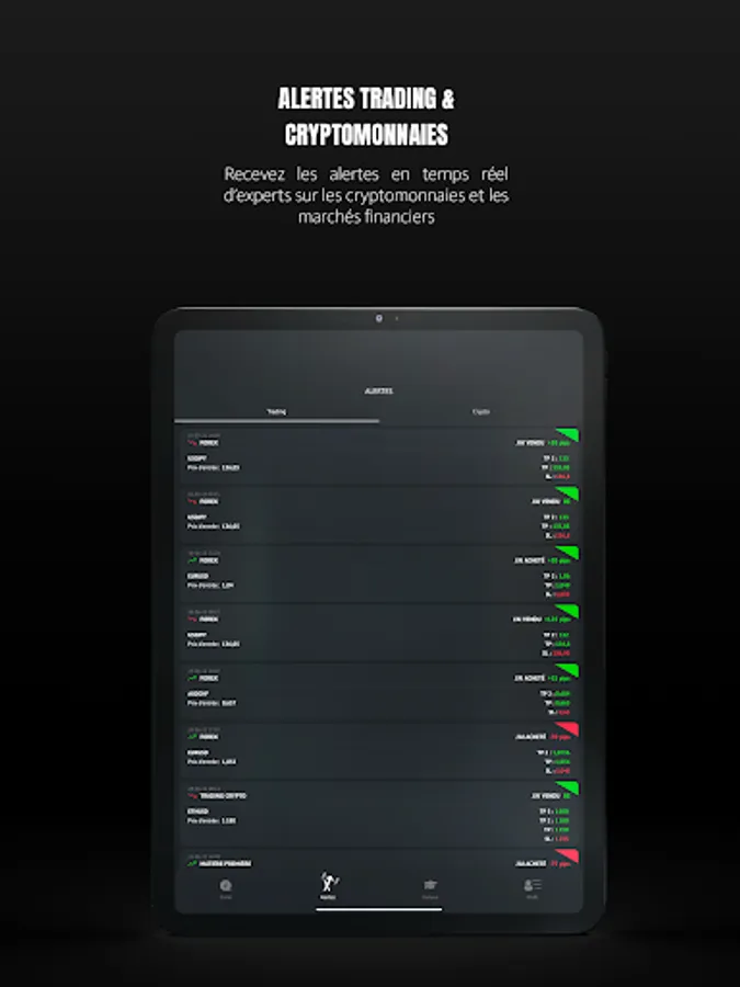 On the Alerts part of the application, you will be able to develop your knowledge and follow Trading & Crypto alerts daily.