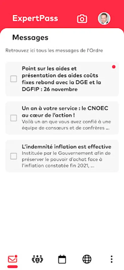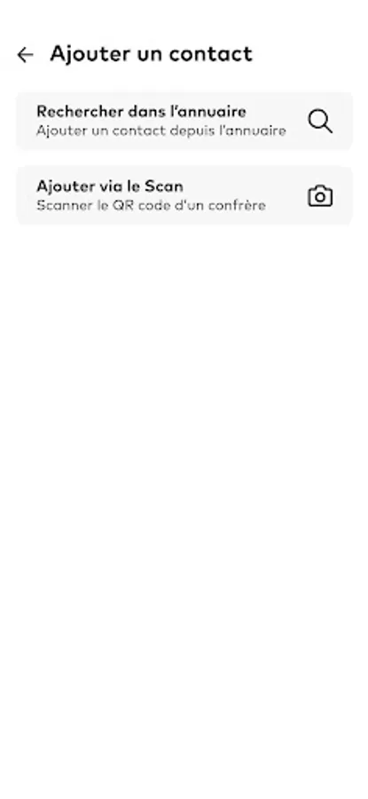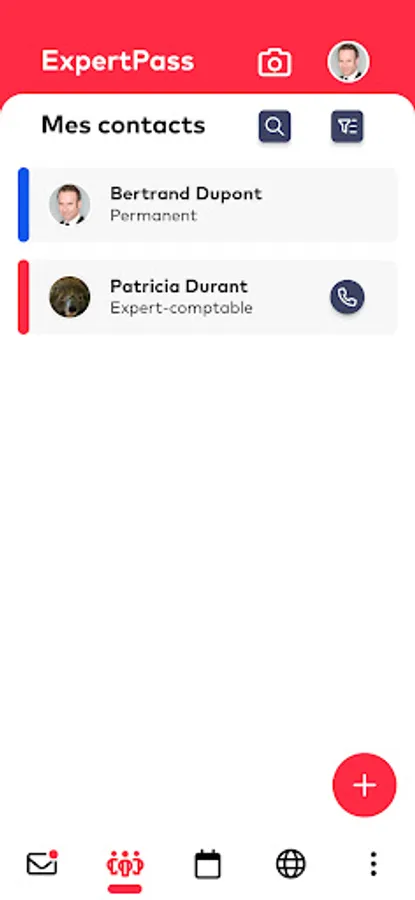 2. Contact management: Expertpass will allow you to expand your address book by adding contacts after a search in the directory of the profession (New) or by scanning the identity card of your colleagues.