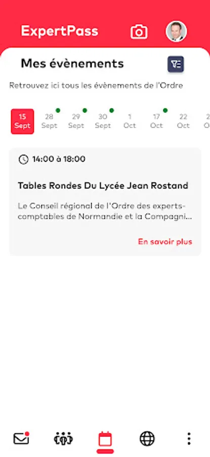 3. Registration for events: Those organized by the national and regional bodies of the profession, or in partnership with other organizations, are listed by date in Expertpass which will allow you to access detailed content and registration procedures.