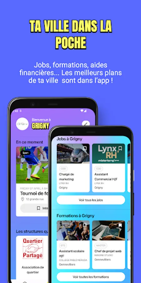 A mobile application specific to each city to offer young people aged 15 to 25 all the information and useful services from pre-integration to professional integration. Jobs, training, financial aid, administrative procedures, events, city associations, orientation and advice... The best maps of your city are in the app.