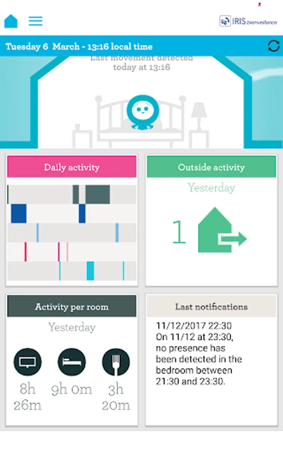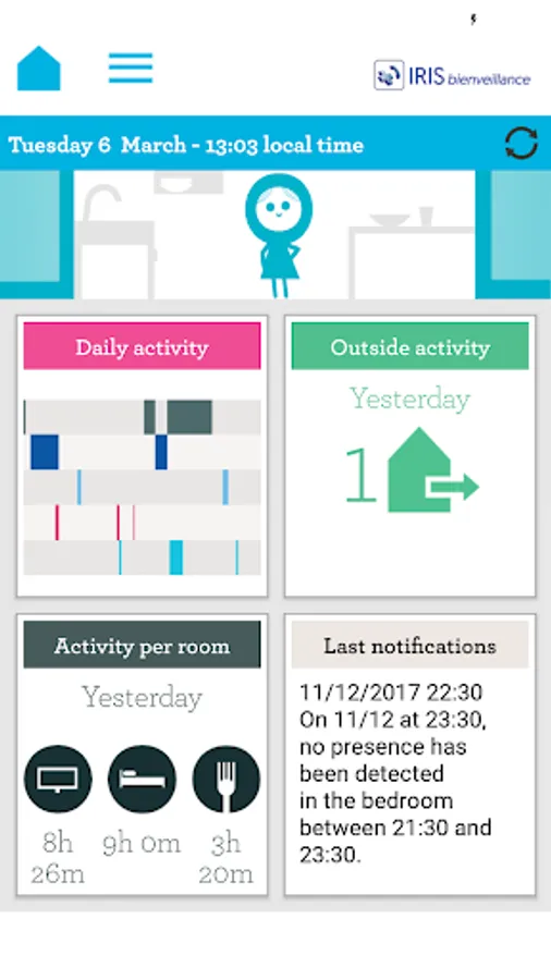 The IRIS BIENVEILLANCE app allows you to be easily reassured every day via your smart phone.