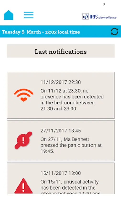 - IRIS BIENVEILLANCE provides access at any time to the last notifications sent.