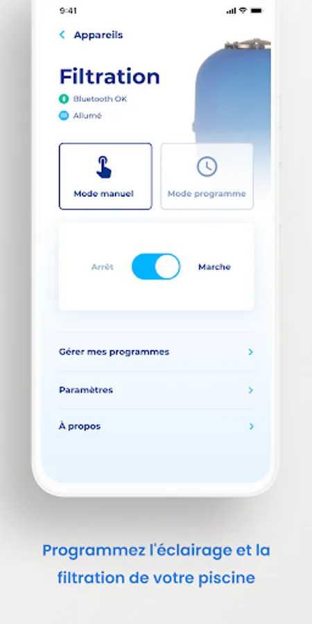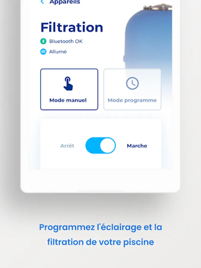 With the Joey subscription, receive the recommendation of the optimal filtration time for your pool, program the switching on of your lighting at nightfall.
