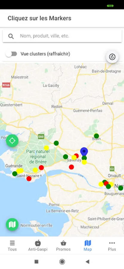 The "Customers" users geolocate on a map or in the form of a list the traders / producers located around them.