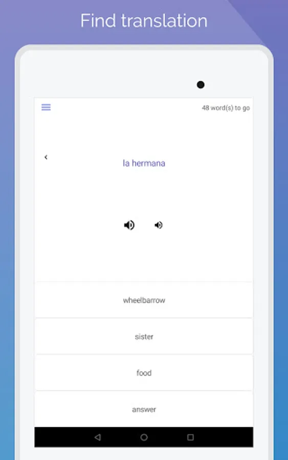 - Find the translation: you'll have to find the right translation amongst a list of possible answers