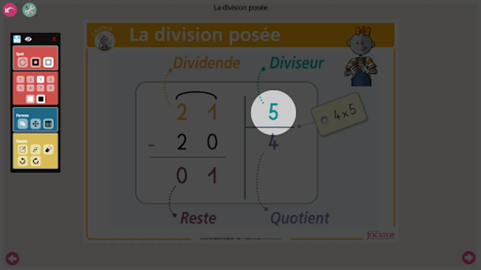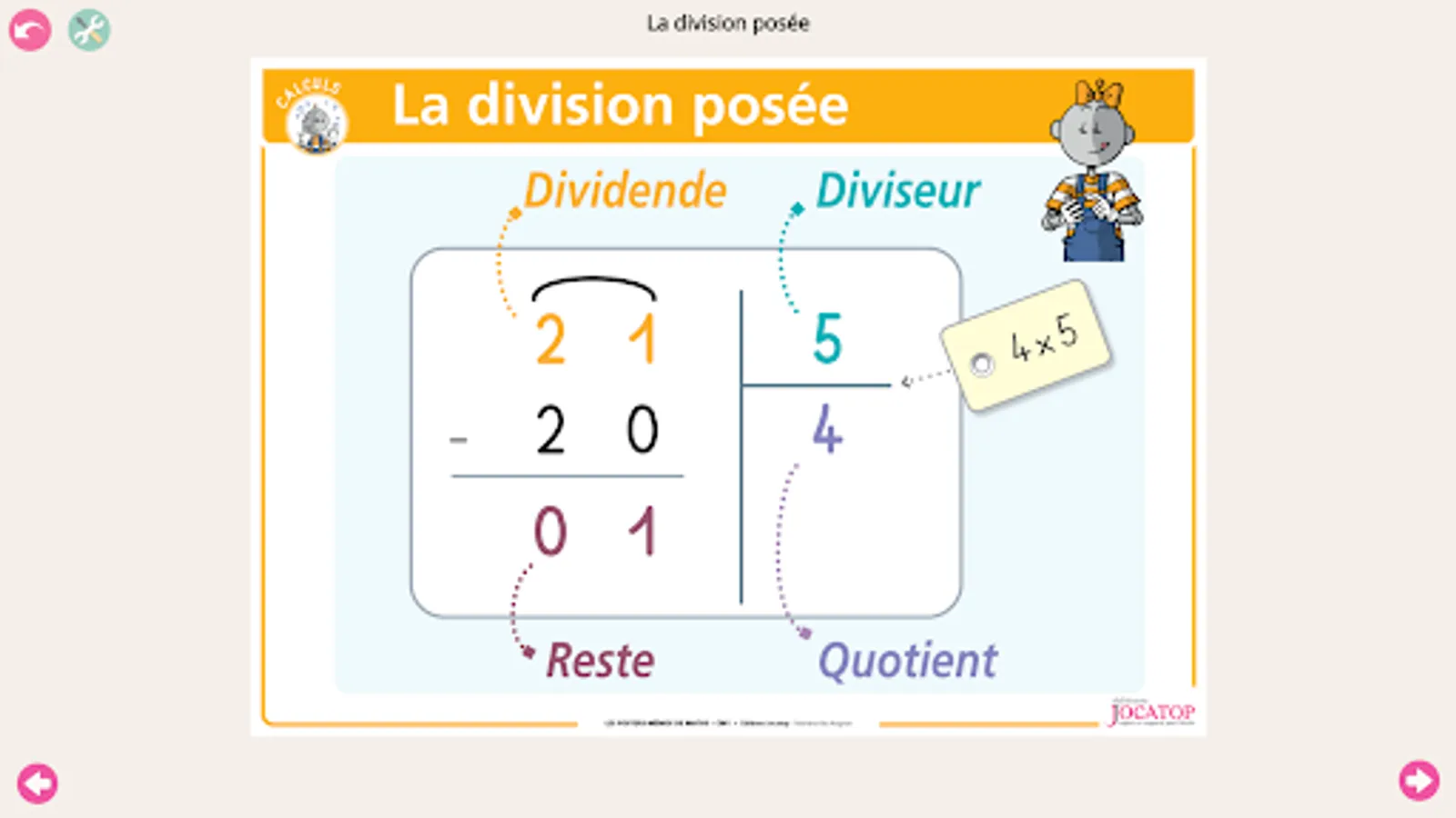 The essentials of the CM1 mathematics program are covered through 40 paper posters, animated by the characters of Bout de Gomme, Tirobot and Robotine. Three types of posters are available: