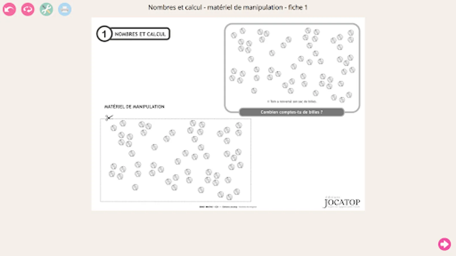 The application allows you to project problem situations and work together, add notes, hide or highlight elements using the editor tool. A written record to be completed by the student after the manipulation session, as well as the answers, are also available there.