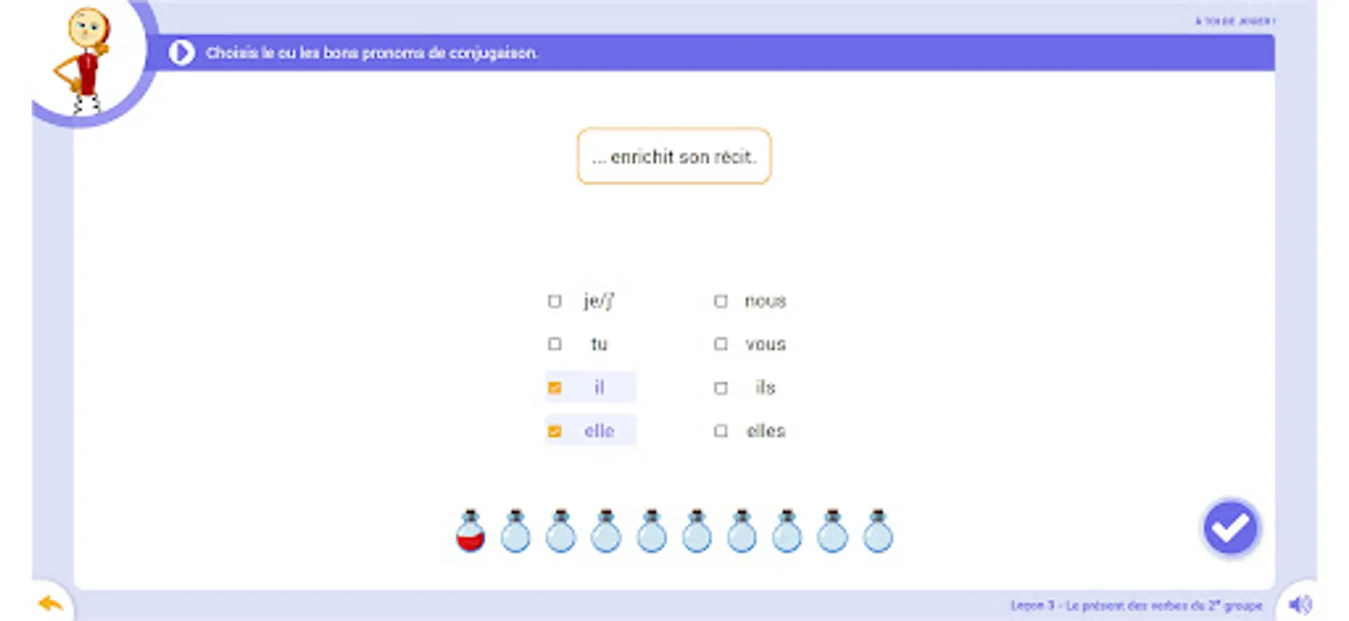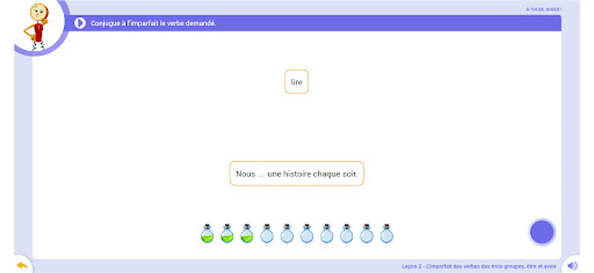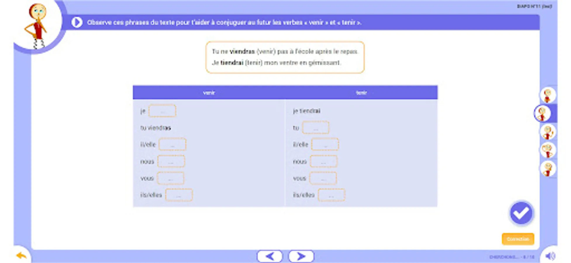 An application including new interactive lessons and exercises to introduce the major themes of conjugation to CM1 and CM2 students.