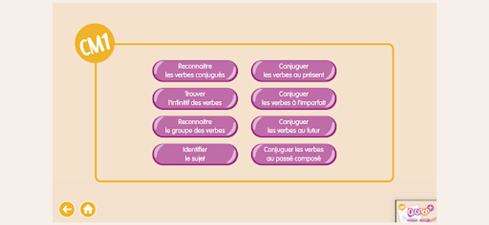 Quizztop+ Conjugation CM1 offers 8 exercises divided into 3 levels: