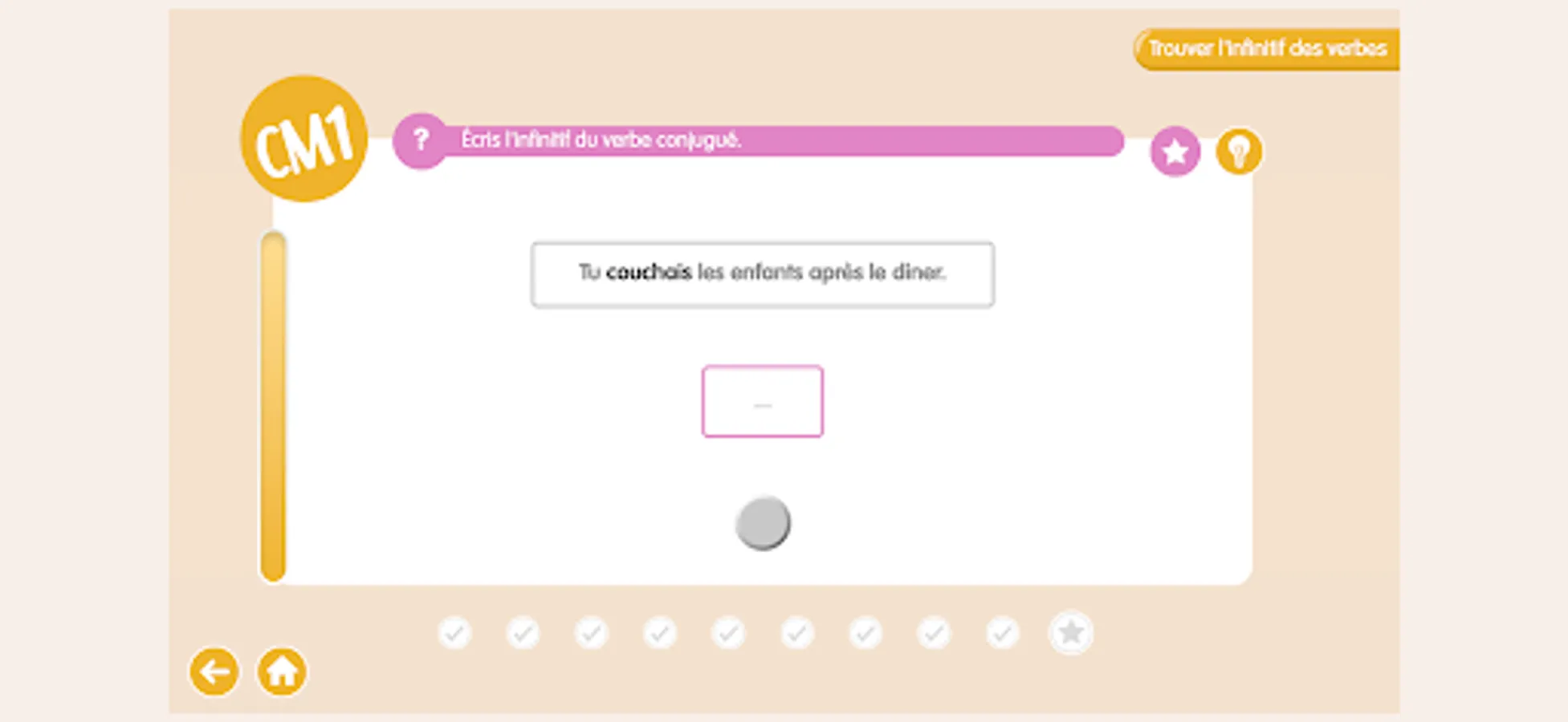 Quizztop+ Conjugation CM2 offers 10 exercises divided into 3 levels: