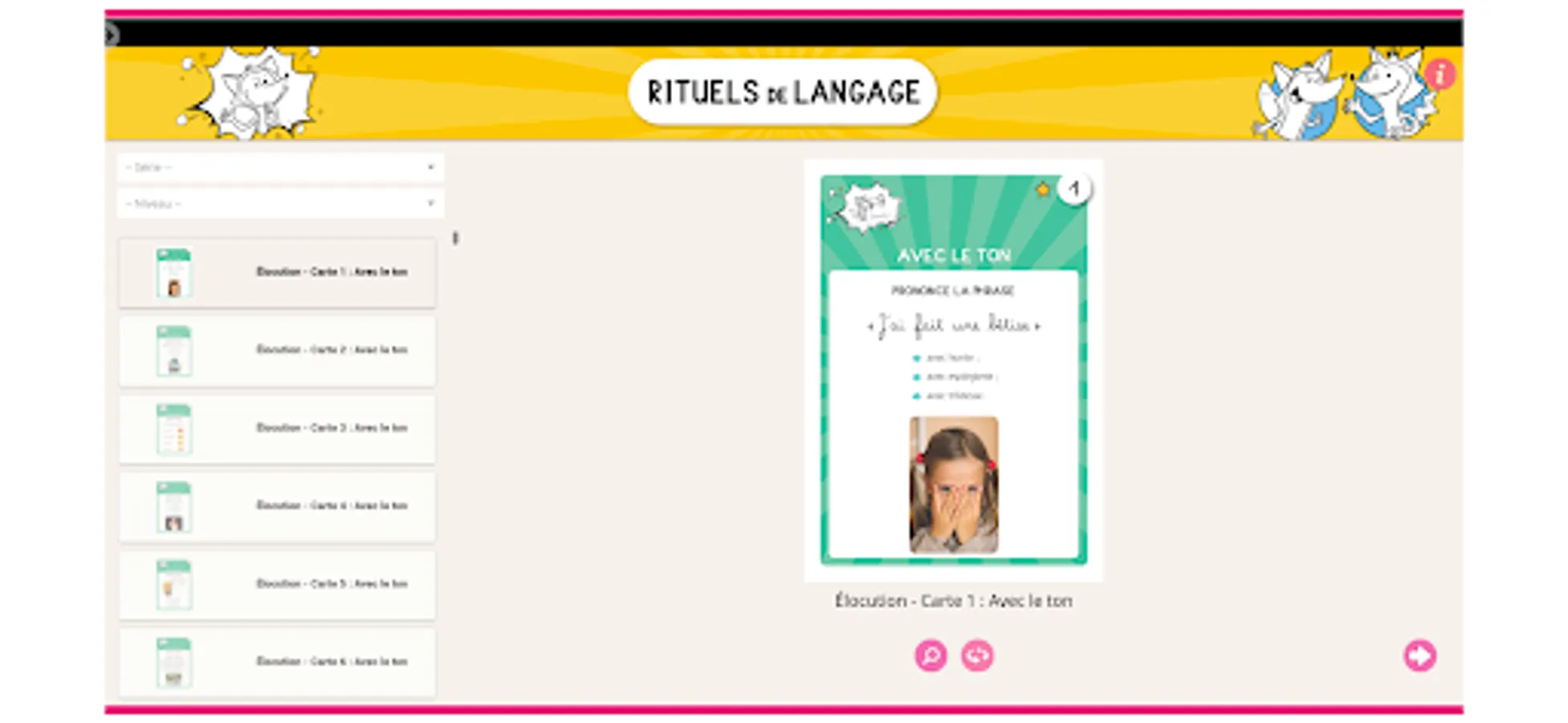 The Language Rituals application allows you to project the cards and filter them by level and skills worked. The editor tool offers a variety of comprehensive features for highlighting, masking or annotating elements of documents.