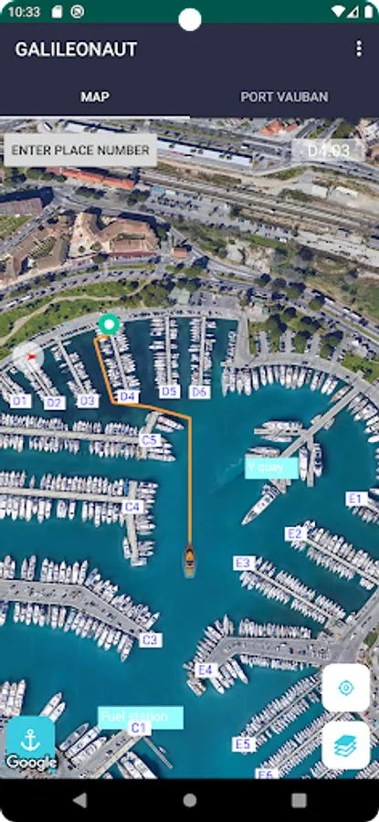 GALILEONAUT considers the location given by the smartphone and use a surface algorithm to compute the trajectory to the berth.
