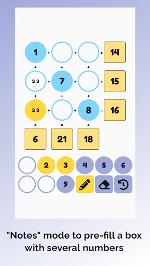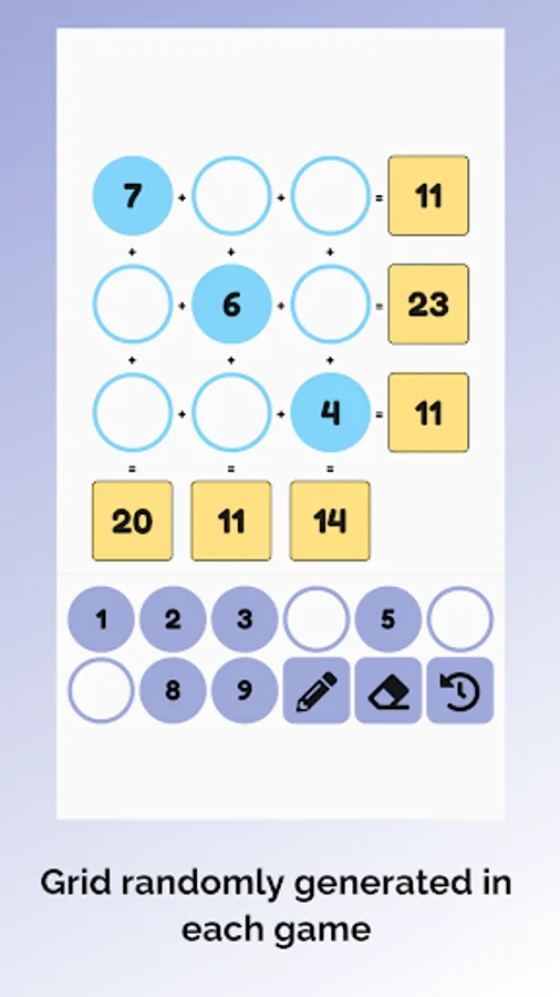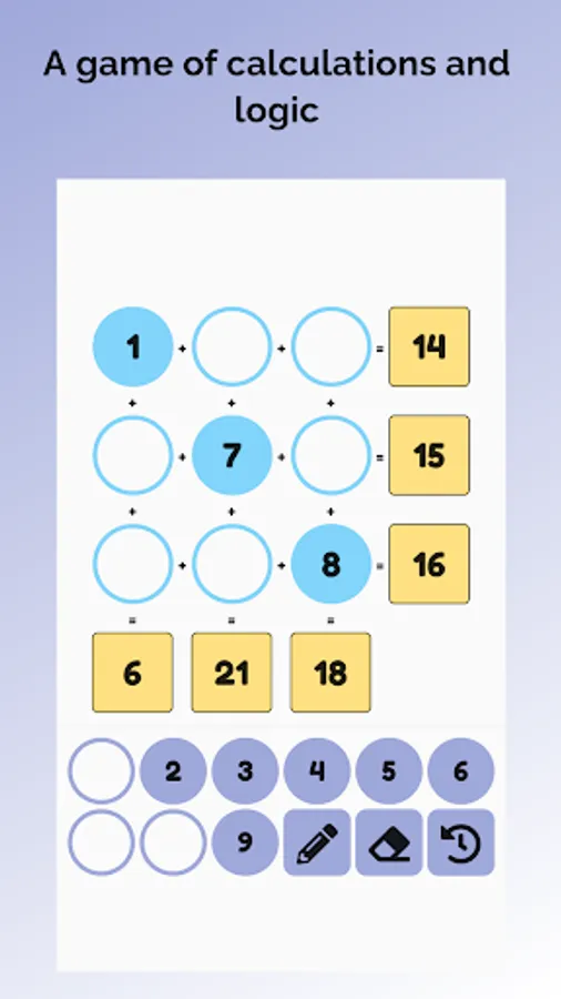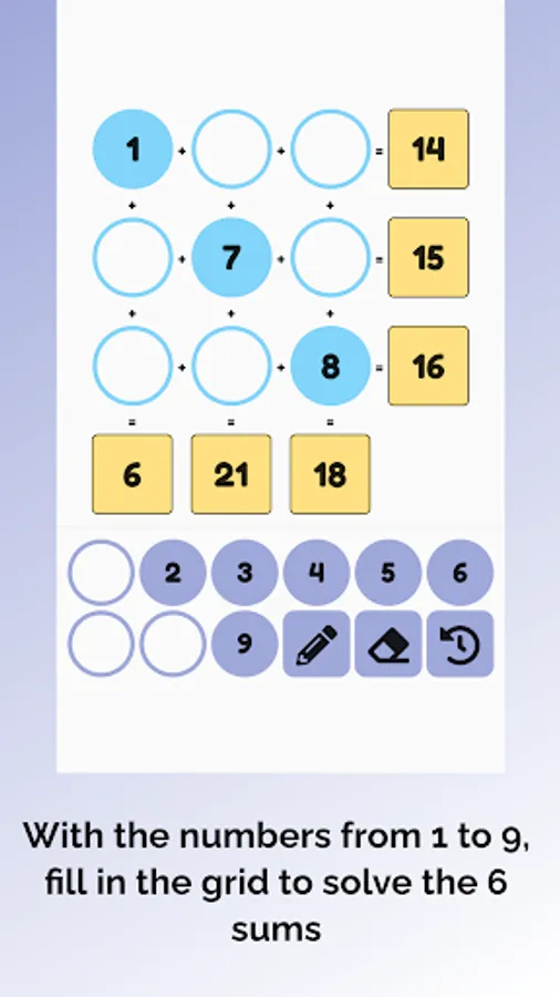With the numbers from 1 to 9, fill in the grid to solve the 6 sums.