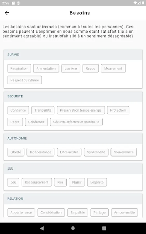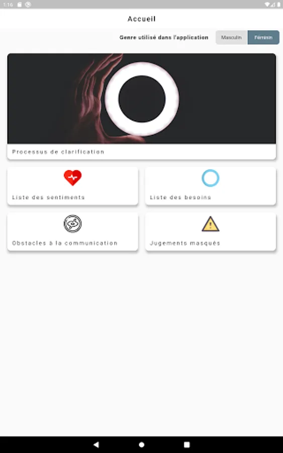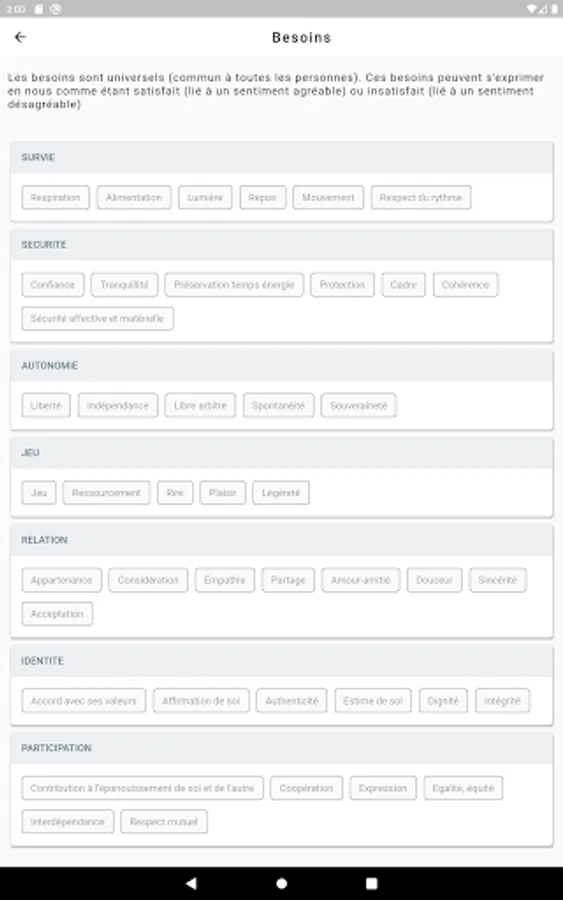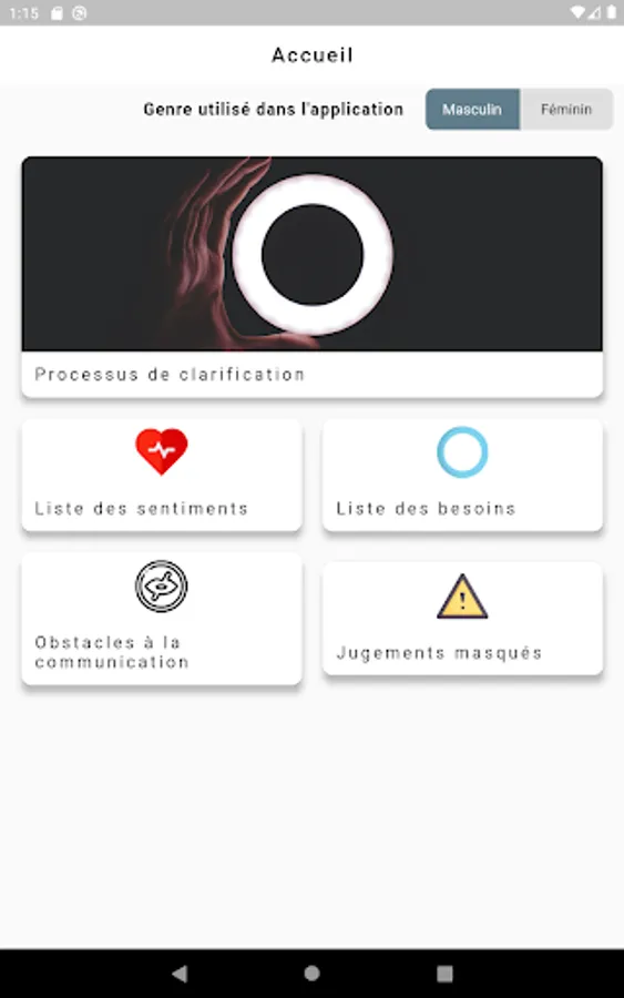 This application will help you clarify your observations, feelings and needs in order to best express your requests. It will also allow you to identify barriers to communication and hidden judgments.
