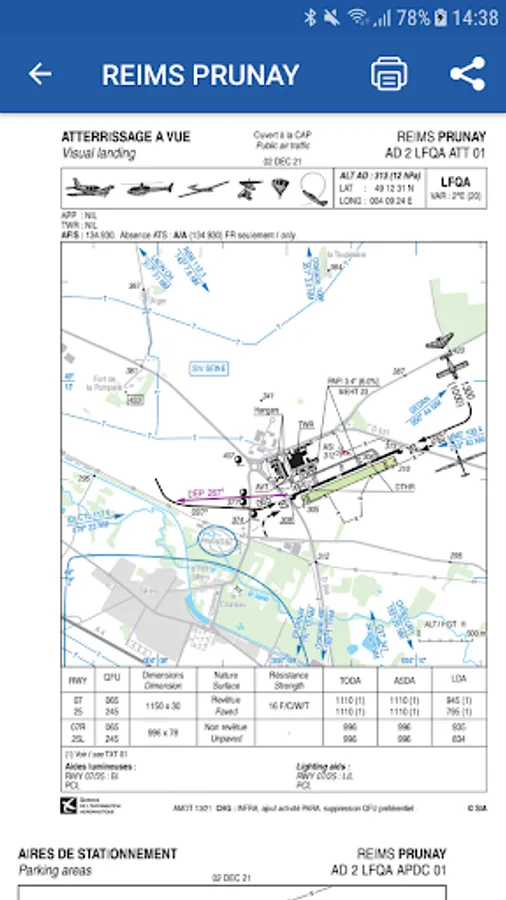 Whatever the network conditions, you always have a more or less recent map for all French aerodromes.